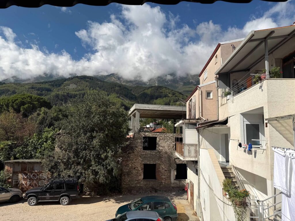 In Albania, many accommodations are family-run guesthouses rather than traditional hotels. (kind of like a bed and breakfast in the USA). Rooms are often simple but clean, and hosts go out of their way to make you feel welcome. Booking platforms like Booking.com are widely used, so it’s easy to reserve in advance or even last minute. We booked all of our lodging ahead of time, but we actually changed some of our lodging to better locations while we were already on our trip! As long as you book free cancellation, this is fairly simple. There are so many places to stay. Below is our guest house in Theth. It was so charming. We also booked our share of airbnbs as well.