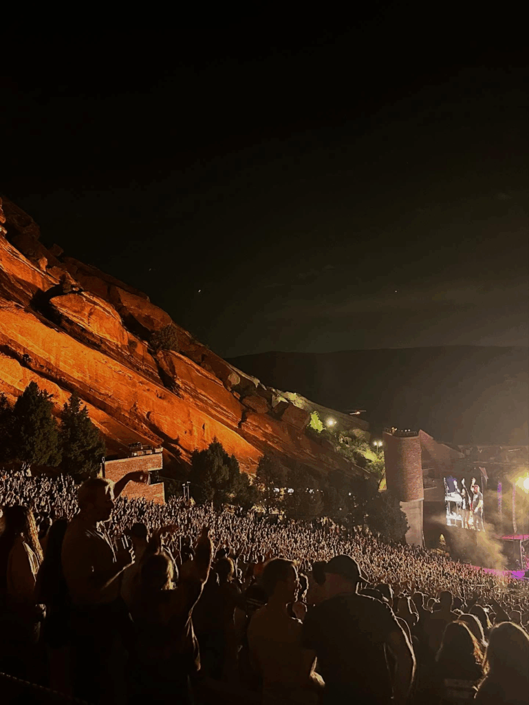On our next trip to Red Rocks, we were lucky enough to get to visit for a concert and it was an incredible experience! We tried to get there early to get a good parking spot, but even 1.5hrs early, the best lot filled up already. We got near the front of the 2nd best lot. I’d recommend getting there early because some of the other lots are basically down an entire mountain from the concert venue! Even with the lot we were in, we had to walk up a ton of stairs – and most people were stopping to take lots of breaks.