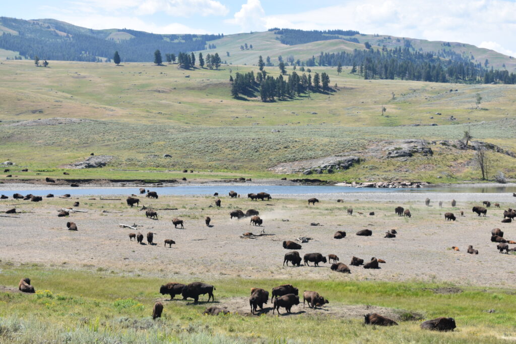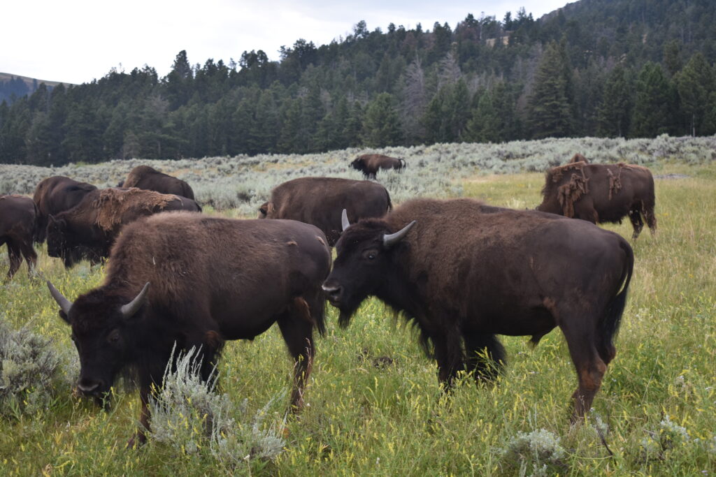 We made it to the gas station at Tower Junction, filled up, used the nice restroom and then headed down the road. Within minutes we saw one bison far in the distance and we were so excited. And then we turned a corner and saw HUNDREDS. They are everywhere. It was so amazing. This was my first experience seeing bison and I was thrilled. Every one of them made me excited and we stopped so many times. The best part about this day was that we would just find stops to pull over and enjoy the animals. We had no agenda other than that. We got stuck in many bison traffic jams, got some amazing pictures, and just thoroughly enjoyed it.