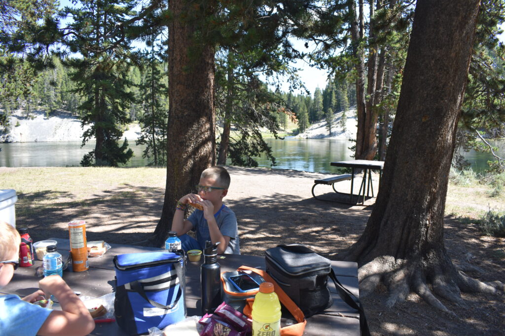 Once we were done we were starving and drove back towards the West Entrance and found a picnic spot along the river to eat our lunch. One of our favorite parts of the trip was just finding some great picnic areas and taking in the views. We tried to always find places where the kids could get into the river and get their feet wet and throw rocks to let off some energy!