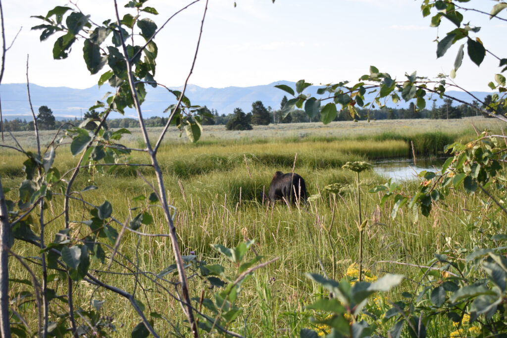 We got up early again and drove back to the Tetons, leaving hotel by 7:30. This time we drove up Moose Wilson Road again but no luck seeing any animals. We did stop at an overlook that looks down at a small creek and has parking for about 15 cars – and we heard there was a moose and a baby there and we just missed it. Someone said there are lots of animal sightings there, plus it’s a beautiful spot to just sit for a bit, so if you have more time, could be a good spot to eat breakfast or just hang out. We then headed towards an area called Schwabacker Landing. We missed it the first time we drove by and on the way back we still didn’t even see the sign, the pics just looked familiar and we saw 3 cars. So look at a map before you go into the park! We got down there and made a short walk along the creek. It was a very flat, easy trail. We read you can walk all the way to the Snake River but we didn’t really have time so we just walked for about 15-20 minutes then turned around. The area has amazing views of the Grand Teton though so we got some of the best pictures of the whole trip here. The creek is really nice, and even had lots of baby ducks. This is another area where lots of animals have been sighted, and there aren’t many people around, but we didn’t see much.