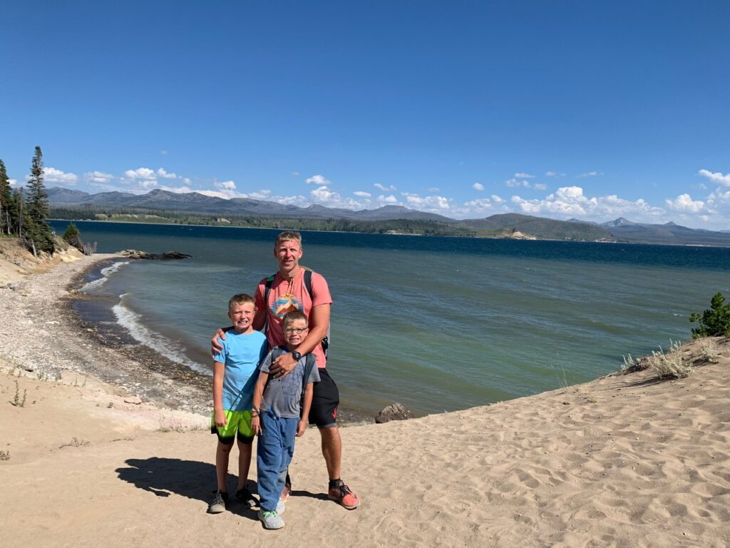 After that we started driving again to find a picnic spot. This time we stopped somewhere along the river again at a really beautiful stop. The kids got in the Yellowstone River for a bit to throw rocks 🙂
