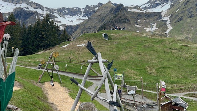Before heading up to the playground – grab a snack from a store in Murren and take it up to eat at the top of the mountain. Once at the top, you’ll see the amazing playground, benches for sitting and a nice restaurant if you want to eat at one of the many mountain huts around the area. You can hike up even higher for more sweeping views of the area as well. We love it here because it wasn’t very crowded and the views were fantastic.