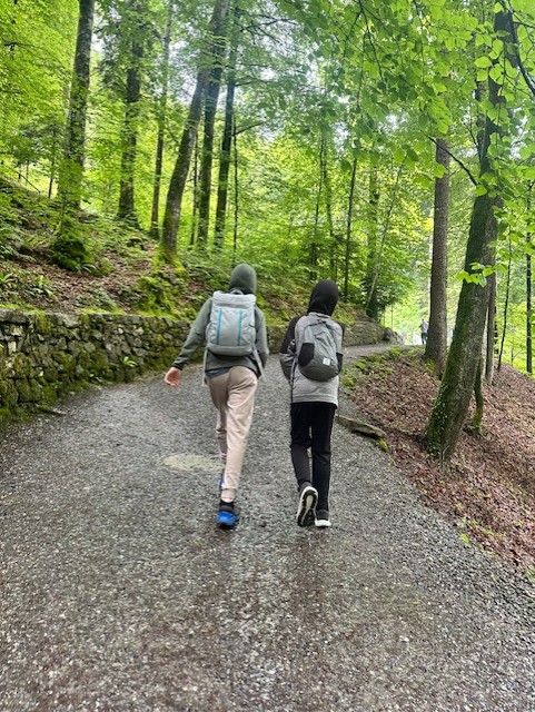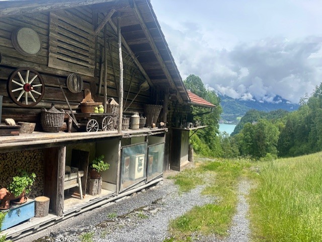 The falls are really impressive, and you can walk across a bridge to see them, or even up and behind them. Once checking out the falls you have a few options. You can wait for the next ferry or you can hike to Iseltwald. This hike is about 4 miles and is fairly easy with minimal elevation gain. You remain high up above the lake until about 3 miles in and then make a fairly steep decline towards Iseltwald. During the hike you get to walk through a nice forest with views of the lake. There was a part of the hike, before you got to Iseltwald where it was near a road, wasn’t that pretty, and we were getting a bit tired.